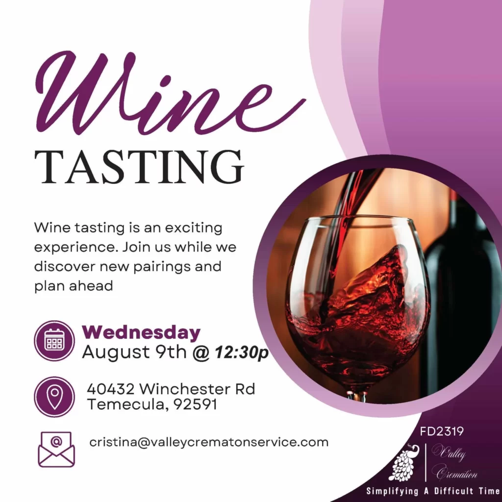 If you’re a wine enthusiast who is also interested in planning for the future, then we have an exciting event for you! Join us August 9th for an exclusive wine tasting experience, where you will not only get to sample some of the finest wines in the region but also learn about planning for your final arrangements.